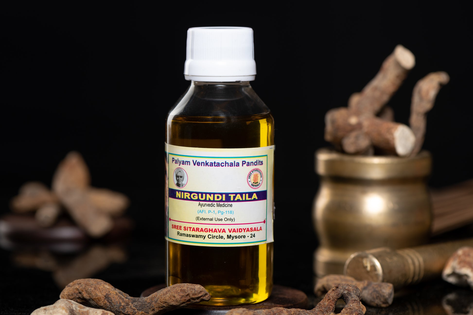 Nirgundi taila is used as massage oil. It can be used in the treatment of pains, aches and sprains.